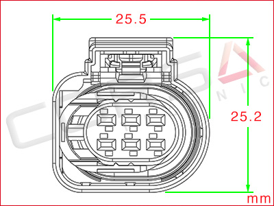 Housing, 6 socket contacts for 20-18 awg wire, 6 seals