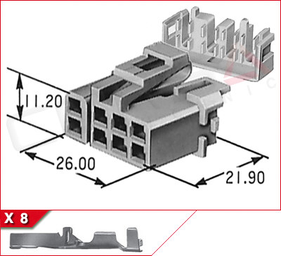 Kit Contents: Housing, 8 socket contacts, rear lock