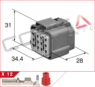 Kit Contents: Housing, 12 socket contacts, 12 seals
