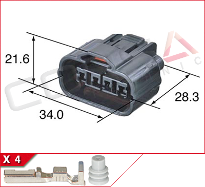 Housing, 4 socket contacts, 4 seals, front lock